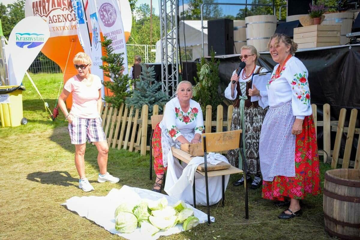Gospodynie z Koła Gospodyń Wiejskich Kościelisko przedstawiły zwyczaj deptania kapusty, zachęcając widzów do bezpośredniego uczestnictwa.