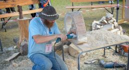Na scenie - twórca instrumentów pasterskich - Krzysztof Siuty oraz prymista - Maciej Gąsienica Mracielnik, poprowadzili warsztaty z wyrobu pasterskich instrumentów: piszczałki sześciootworowej, bezotworowej, dwojnicy, fujary 3 otworowej, trąbity, złóbcoków, dud podhalańskich i fujary słowackiej.
