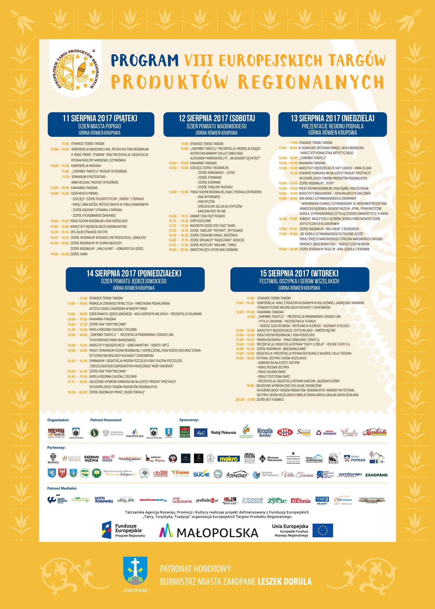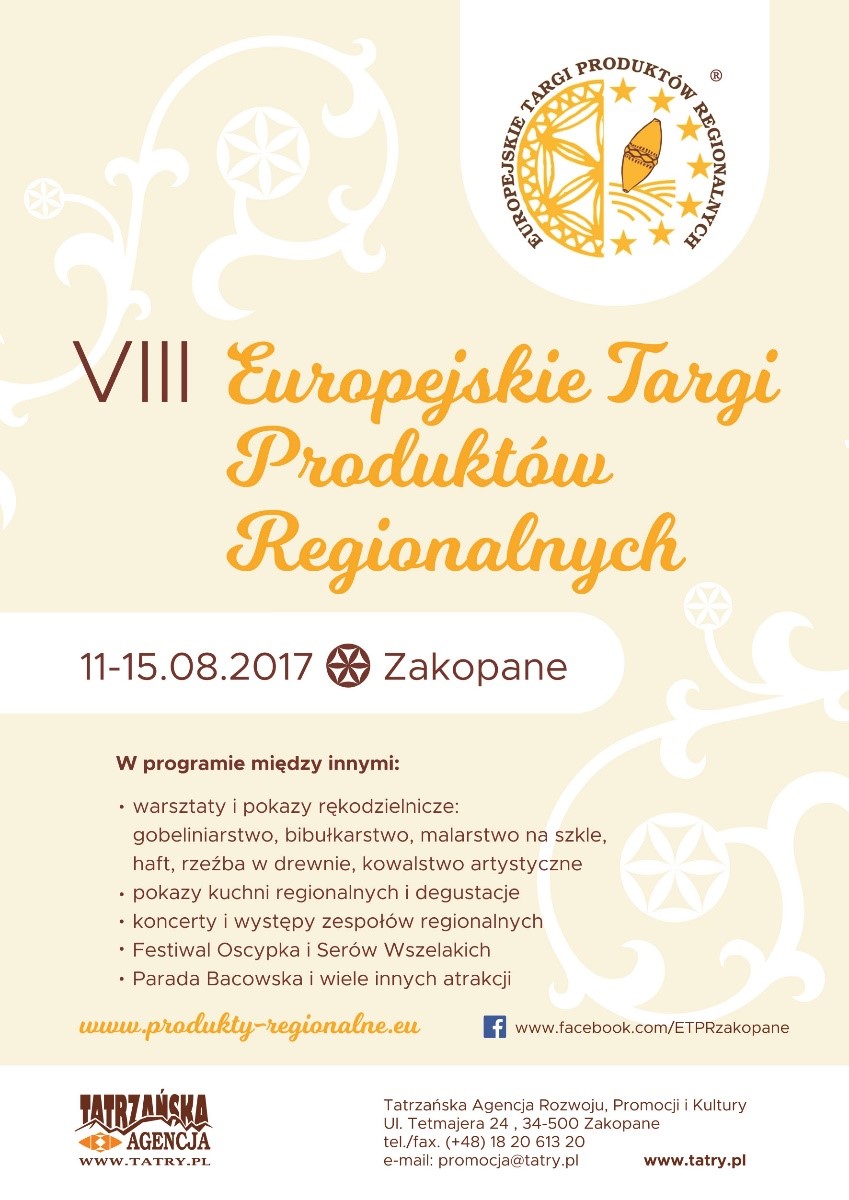 zorganizowanego przez Starostę Powiatu Tatrzańskiego i Tatrzańską Agencję Rozwoju, Promocji i Kultury z czasie VIII Europejskich Targów Produktów Regionalnych na Górnej Równi Krupowej odbywających się w dniach 11-15 sierpnia 2017 roku.